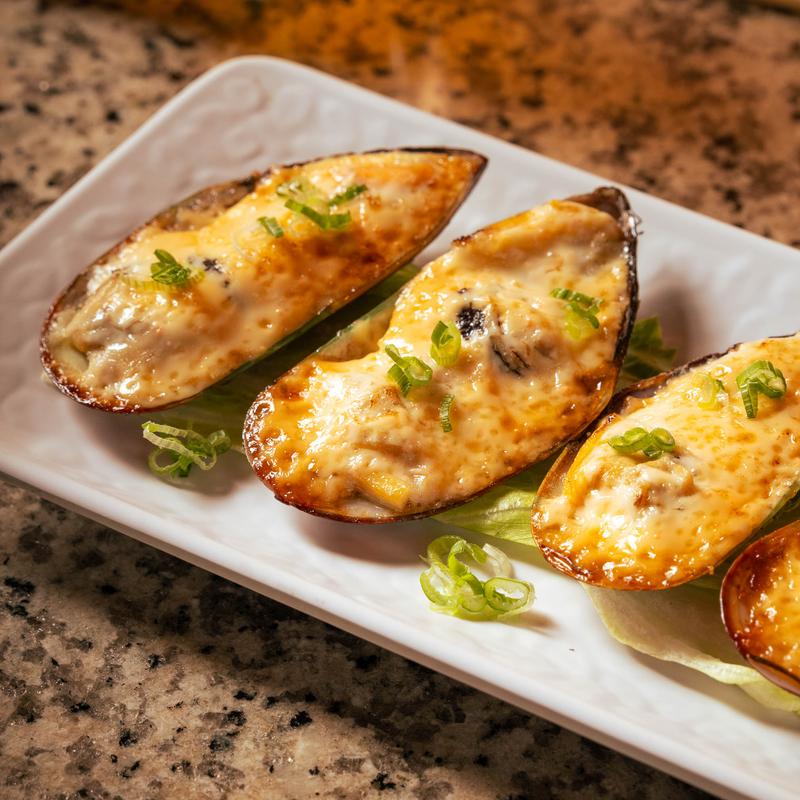 California roll, scallop, mushroom, onion, baked, mayo, and house soy.